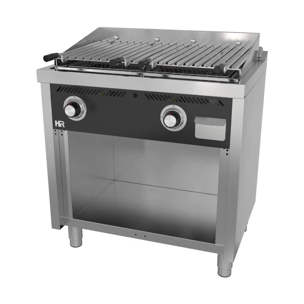 La barbacoa profesional 800 con estante de HR FAINCA está diseñada para ofrecer alto rendimiento, robustez y fiabilidad en cocinas industriales, restaurantes, parrillas, asadores y establecimientos de hostelería que trabajan con grandes volúmenes y requieren un equipo potente y duradero.