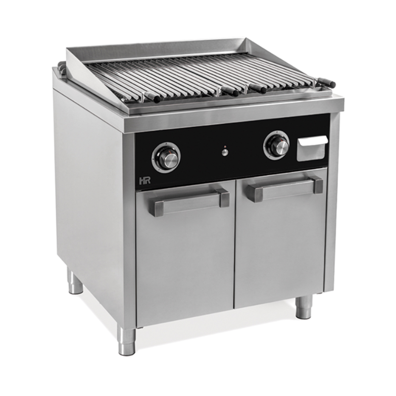 Dispone de una amplia superficie de cocción de 800 mm, con piedra volcánica que distribuye el calor de forma uniforme, logrando un cocinado perfecto de carnes, pescados y verduras.