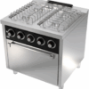 Con unas dimensiones de 1200 x 750 x 880 mm, un peso de 90 kg y una potencia total de 39 kW, esta cocina ofrece un equilibrio perfecto entre potencia, superficie de cocción y ocupación de espacio. Su estructura inferior abierta proporciona un área adicional de almacenamiento o apoyo, favoreciendo la organización dentro de la cocina y mejorando el flujo de trabajo diario.