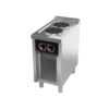 Las placas presentan una excelente transferencia térmica y estabilidad durante el cocinado, mientras que los mandos frontales permiten regular con precisión la potencia de cada zona, ofreciendo un manejo cómodo y seguro incluso en servicios de máxima exigencia. Con unas dimensiones de 800 x 750 x 880 mm, un peso de 71 kg y una potencia total de 10,4 kW (380 V, 3N), esta cocina se adapta perfectamente a espacios compactos sin renunciar a la capacidad de producción necesaria en un entorno profesional.