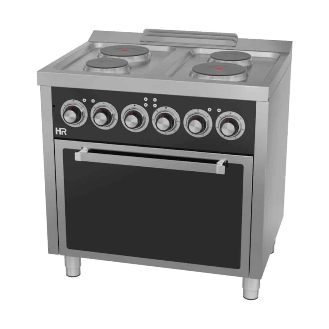La cocina eléctrica 4 placas con horno HR Fainca es una solución profesional eficiente y rentable, pensada para negocios de hostelería que buscan rendimiento, funcionalidad y una excelente relación calidad-precio en equipamiento de cocción.