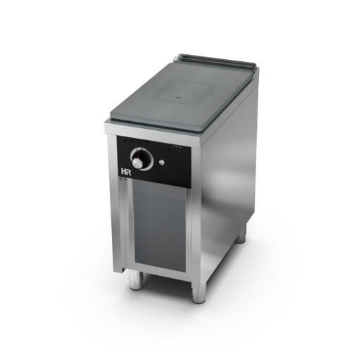 Este modelo incorpora una placa radiante de 400 mm montada sobre un mueble con puerta, lo que permite aprovechar mejor el espacio de cocina, facilitando almacenamiento inferior y aportando un diseño compacto y eficiente. La placa proporciona un calentamiento uniforme en toda la superficie, ideal para recipientes de gran formato, fondos, reducciones, salsas o cocciones prolongadas que requieren un calor estable y homogéneo.
