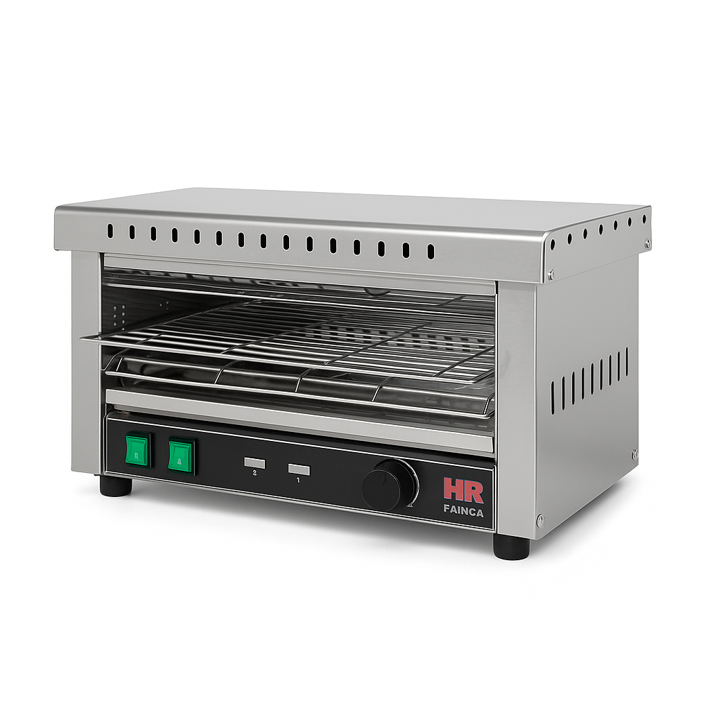 El Tostador Simple Blindado HR FAINCA T03CONB es un equipo profesional de alto rendimiento diseñado para ofrecer un tostado rápido, homogéneo y duradero en entornos de hostelería. Fabricado en acero inoxidable de alta calidad, combina resistencia, fiabilidad y una excelente eficiencia energética, garantizando resultados perfectos en cada uso.