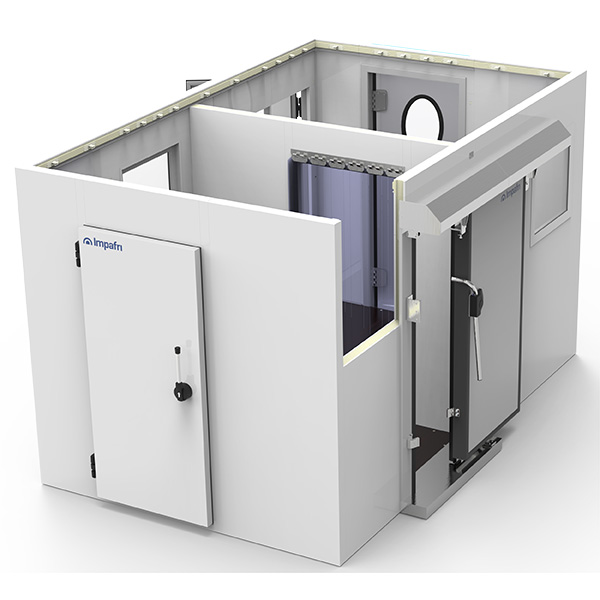 Espesor aislamiento. 80 mm (tª +) 100mm (tª –). Espuma de poliuretano libre de cfc inyectado a alta presión con densidad de 45 kg/m3 80mm (Tª +)