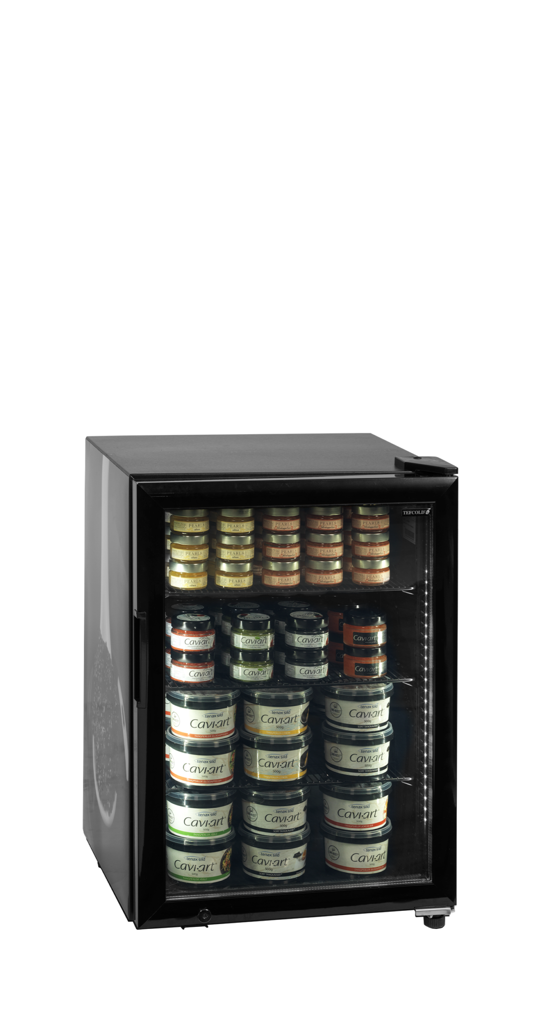 El refrigerador UR90G-SUB ZERO es el refrigerador de sobremesa perfecto para el caviar. Preserva la calidad, el sabor y la textura del caviar, ya que puede ajustarse al rango de temperatura al que idealmente debería almacenarse el caviar (de -6 a 0 °C). El sistema de refrigeración ventilado garantiza una temperatura uniforme y estable en toda la vitrina.
