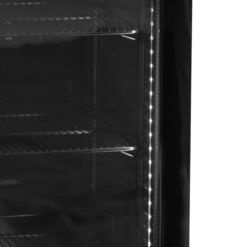 Luz vertical interna LED|Interior y exterior negro|Excelente presentación del producto|Puerta de cristal térmico|Estantes ajustables|Patas regulables