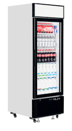 La gama LGC ofrece vitrinas de una, dos y tres puertas. Estas resistentes vitrinas están equipadas con útiles características, como dos luces LED verticales por puerta, una base de acero inoxidable para facilitar la limpieza y un sistema de refrigeración de bajo consumo. El display LED permite identificar la marca, y las ruedas facilitan la movilidad, mientras que los pies con bloqueo garantizan la estabilidad.