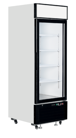 La gama LGC ofrece vitrinas de una, dos y tres puertas. Estas resistentes vitrinas están equipadas con útiles características, como dos luces LED verticales por puerta, una base de acero inoxidable para facilitar la limpieza y un sistema de refrigeración de bajo consumo. El display LED permite identificar la marca, y las ruedas facilitan la movilidad, mientras que los pies con bloqueo garantizan la estabilidad.
