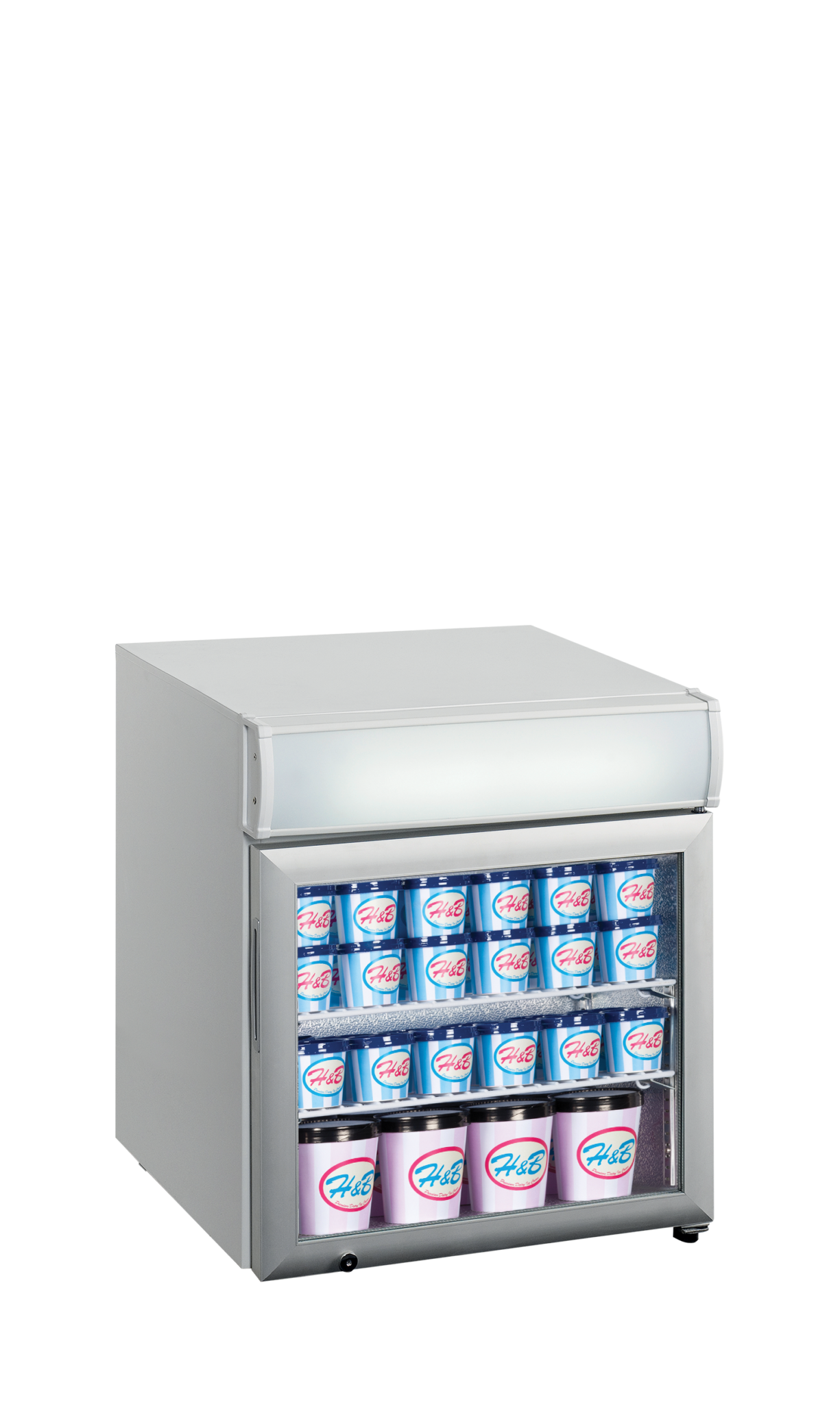 La gama UF-GCP de congeladores de exposición de sobremesa incluye un display iluminado con LED que ayudará a atraer la atención de los clientes. Es fácil de personalizar para adaptarse a tus necesidades, ya que cuenta con estantes y pies ajustables. Coloca el congelador sobre el mostrador para estimular las ventas por impulsos.