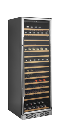 La gama TFW-F de vinotecas de acero inoxidable ofrece una solución moderna para exponer y almacenar botellas de vino. Presenta un diseño elegante con frontal de acero inoxidable, interior negro, iluminación LED suave y estantes de madera extraíbles. El moderno sistema de refrigeración es muy eficiente y reduce el ruido, el calor y el consumo de energía del refrigerador.