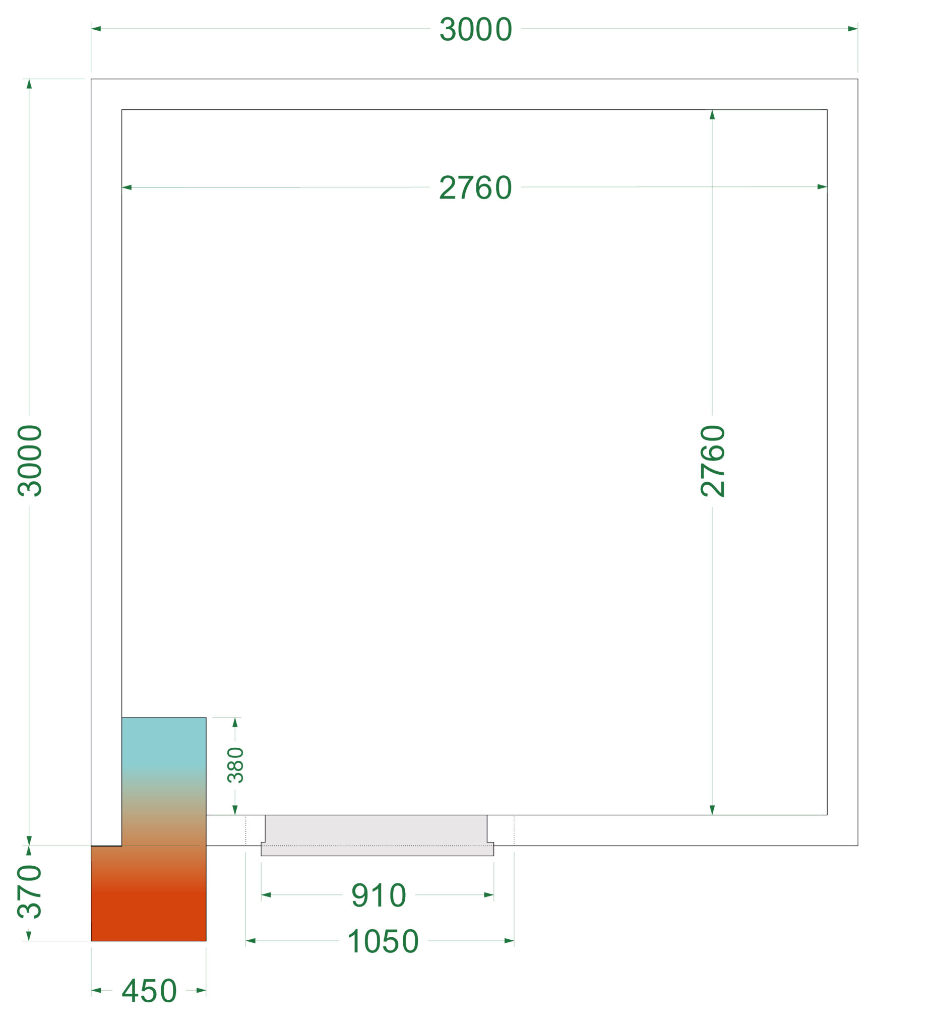 Dimensiones: 3000 x 3000 x 2200 mm