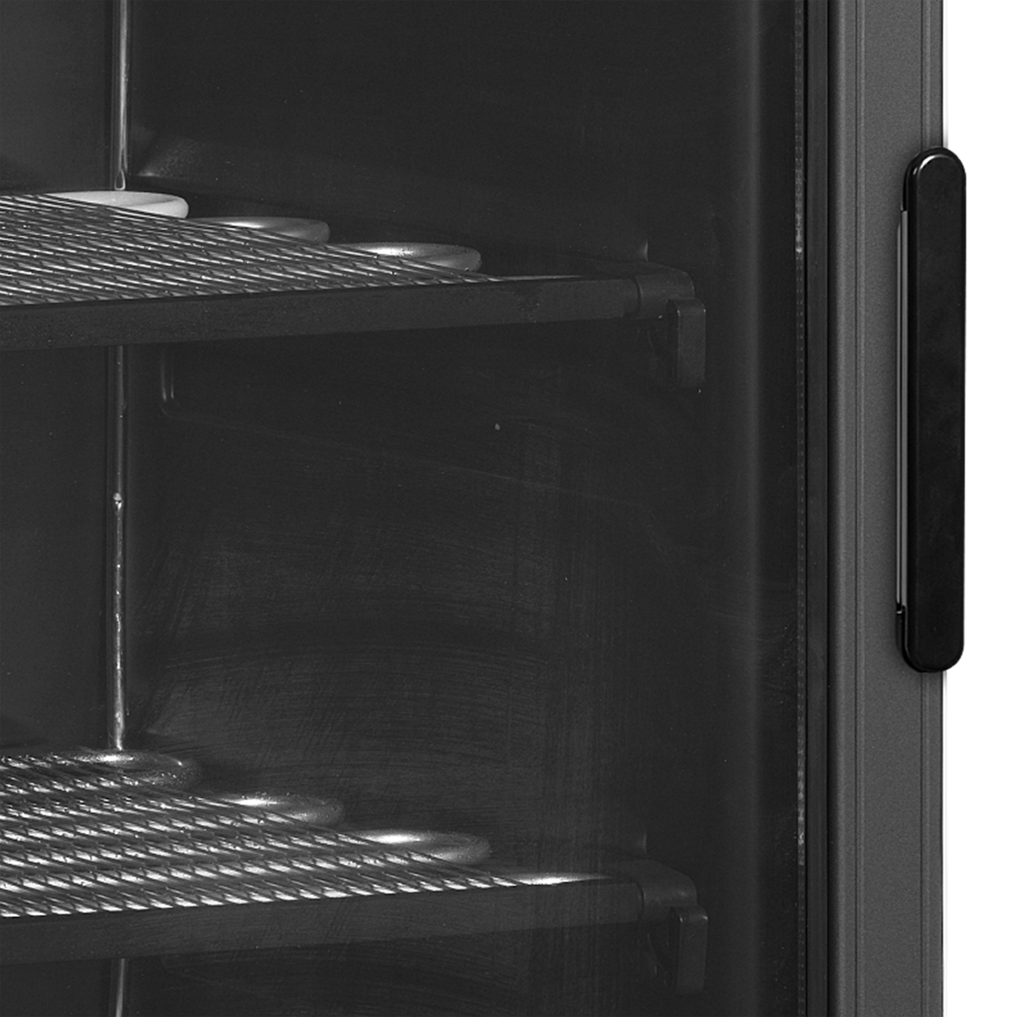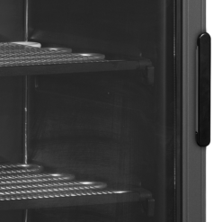 Excelente presentación del producto|Puerta de cristal con bisagra a izquierda|Puerta de cristal térmico|Interior y exterior negro|Termómetro digital|Luz interior|Estantes fijos|Desagüe de agua de descongelación|Patas regulables