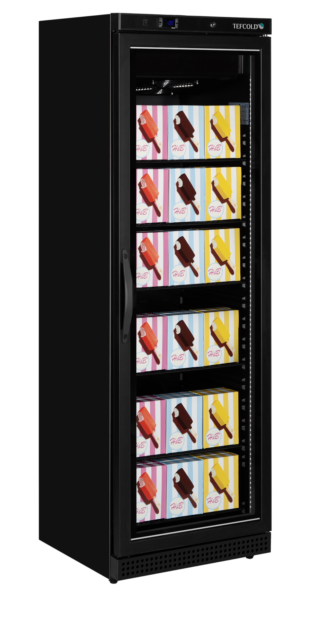 La gama de congeladores con vitrina UF400VG está disponible en negro o blanco con marco de puerta de acero inoxidable. Cuenta con refrigeración ventilada, descongelación automática y termostato digital. Con puerta de cristal calefactada, estantes ajustables e iluminación interior LED, ofrece una excelente presentación de sus productos congelados.