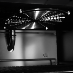 Cristal calefactado para prevenir la condensación|Interior y exterior negro|Luz interior LED vertical con interruptor|Refrigeración ventilada automática|Estantes ajustables de rejilla|Control digital e indicador de temperatura|Cierre|Patas regulables