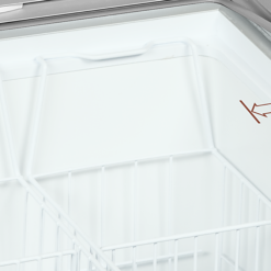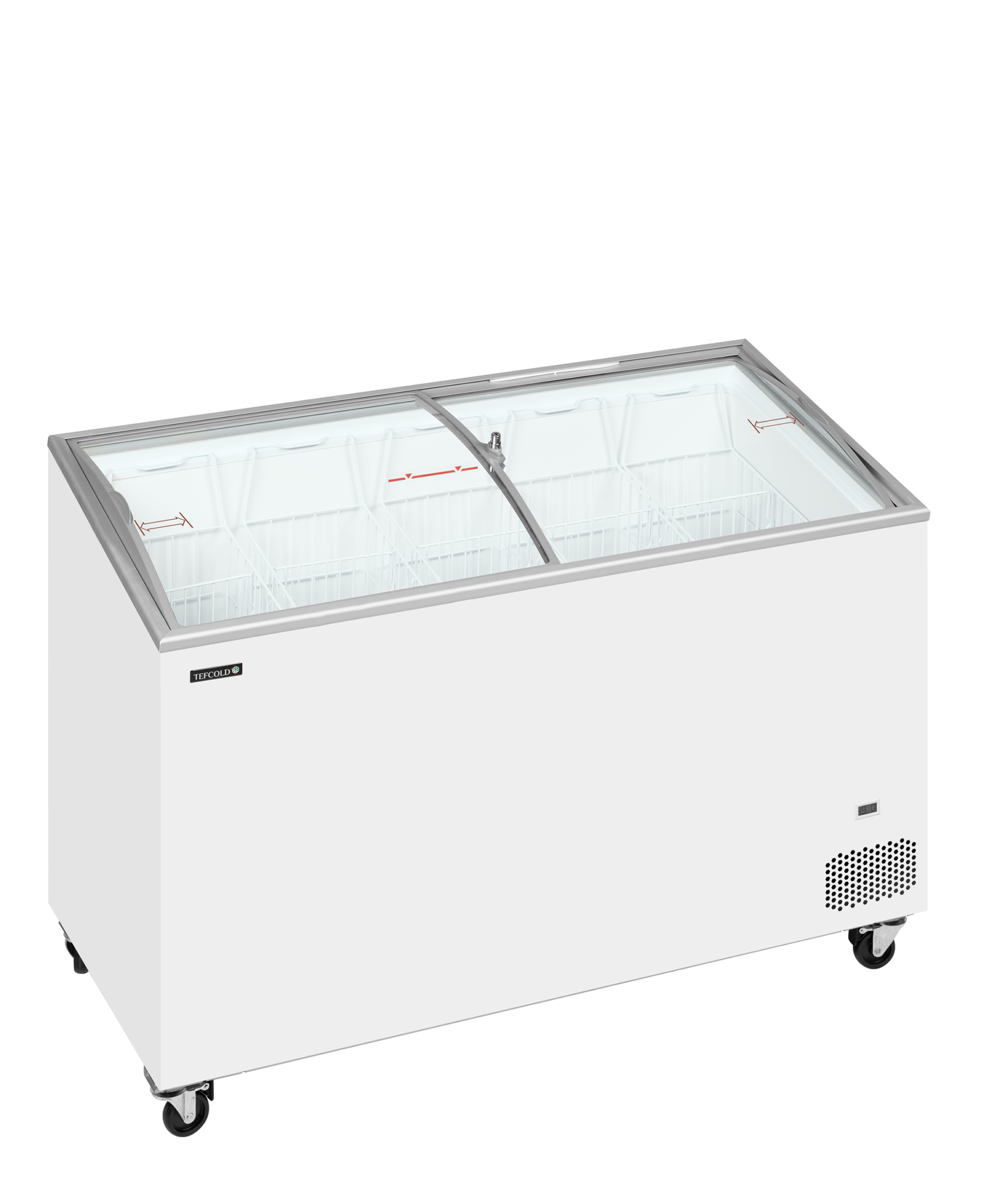 Exposición inclinada para una mejor presentación|Tapas deslizantes curvas con cierre|Incluye juego completo de cestos|Idóneo para la personalización con la marca|Termómetro digital|Ruedas giratorias con freno|Clase climática 5 para un alto rendimiento