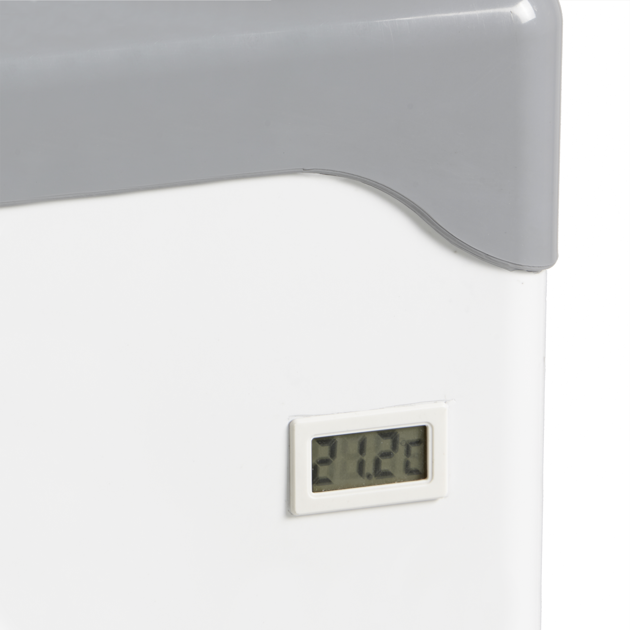 Incluye juego completo de cestos|Tapas planas deslizantes de cristal con cierre|Termómetro digital|Ruedas giratorias con freno|Clase climática 5 para un alto rendimiento