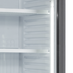 La gama SCU de enfriadores de botellas ofrece una excelente exposición y espacio para almacenamiento. Está disponible en diversos tamaños con o sin display. Se trata de un armario blanco que cuenta con una puerta de cristal negra reversible con marco de aluminio, estantes ajustables e iluminación LED interior para una presentación óptima del producto. Un sistema de refrigeración asistido por ventilador garantiza una refrigeración homogénea en todo el armario.