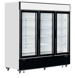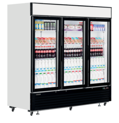 La gama LGC ofrece vitrinas de una, dos y tres puertas. Estas resistentes vitrinas están equipadas con útiles características, como dos luces LED verticales por puerta, una base de acero inoxidable para facilitar la limpieza y un sistema de refrigeración de bajo consumo. El display LED permite identificar la marca, y las ruedas facilitan la movilidad, mientras que los pies con bloqueo garantizan la estabilidad.
