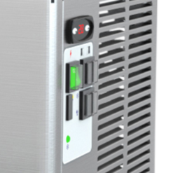 Doble función: granizadora y enfriadora de bebidas|Dimensiones extraordinariamente reducidas|Tapa con sistema de cierre de seguridad|Panel de acero inoxidable|Bandeja de goteo con indicador de nivel|Termostato electrónico