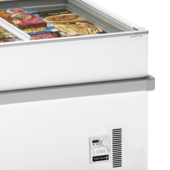 La gama SSF de congeladores para supermercados es una opción económica y ofrece una gran relación calidad-precio. Está disponible en varios tamaños. Las tapas planas correderas son de cristal templado y permiten una buena visión de los productos congelados del interior. El congelador incluye cestas y barras parachoques. Ideal para instalaciones en isla.