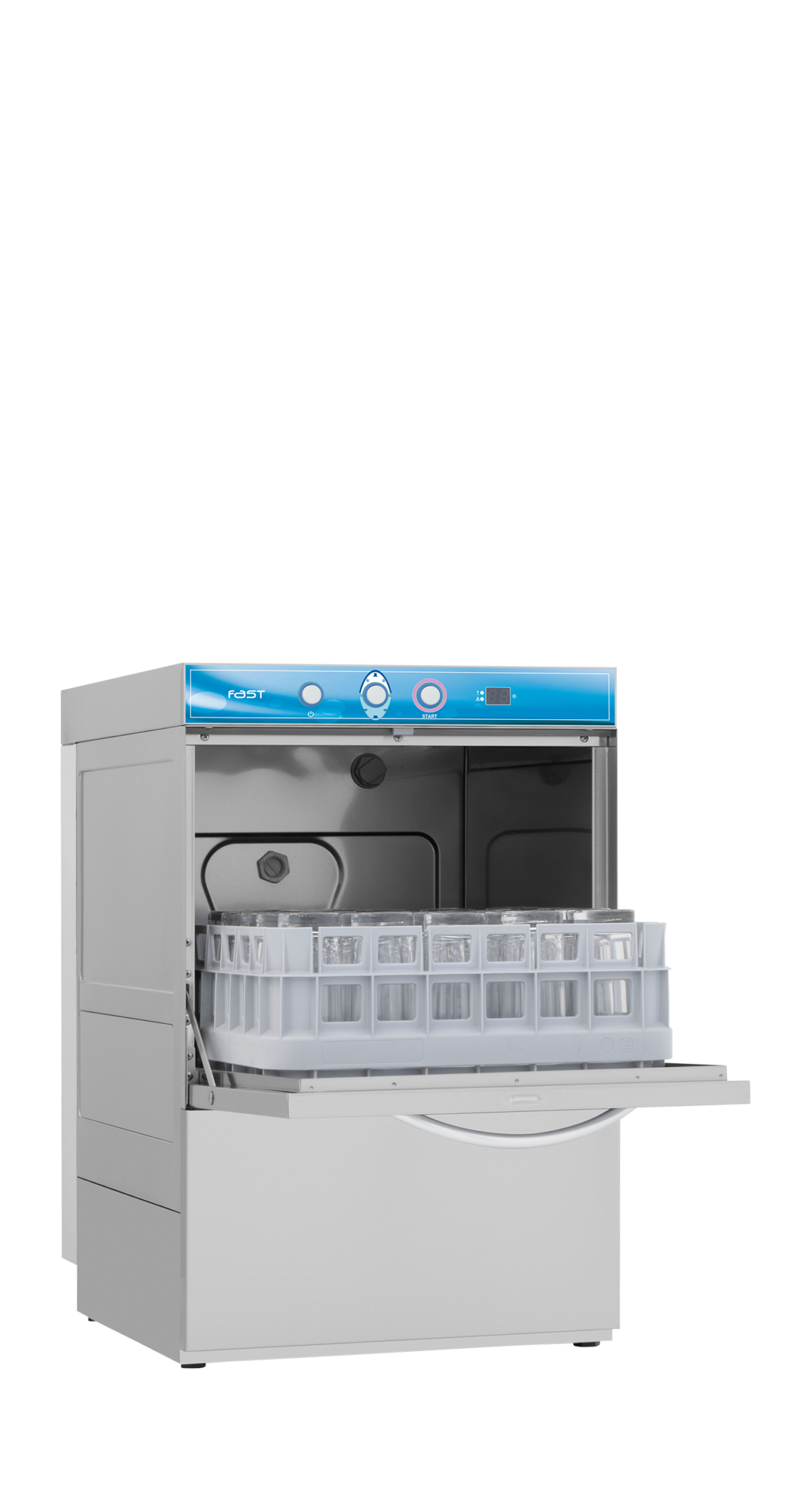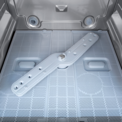 Lavavasos con puerta de doble pared y brazos de lavado superiores e inferiores.