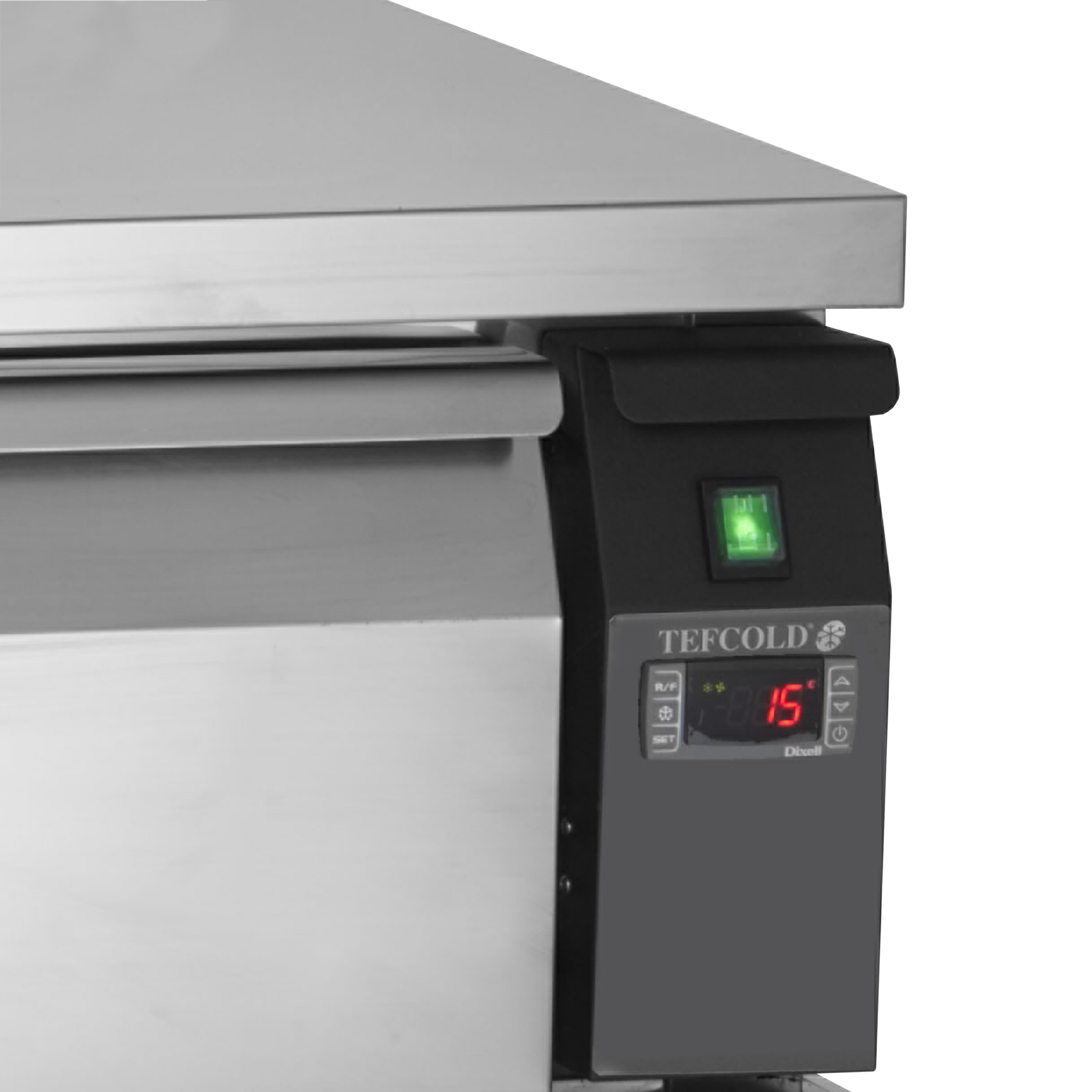 La gama UD de Uni-Drawers ofrece una solución flexible que te permite cambiar los cajones individualmente de refrigeración a congelación tocando un botón. Esto resulta perfecto cuando el espacio es limitado. El rango de temperatura se puede ajustar entre -21 y-18 grados, o entre +1 y +4 grados. Está disponible en dos anchos diferentes, con 1 o 2 cajones. Todos están dimensionados para cantinas GN de hasta 150 mm de fondo. La encimera está diseñada para resistir aplicaciones de gran carga como freidoras, hornos, etc.