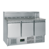 Mesa fría de pizza G-line, con una excelente relación calidad-precio, equipada con encimera de granito. Ideal para elaborar pizzas, ya que la encimera se mantiene fría y dificulta que la masa se pegue a ella. El hueco del mostrador admite bandejas GN de tamaño 1/6 y los armarios presentan las dimensiones de GN1/1.