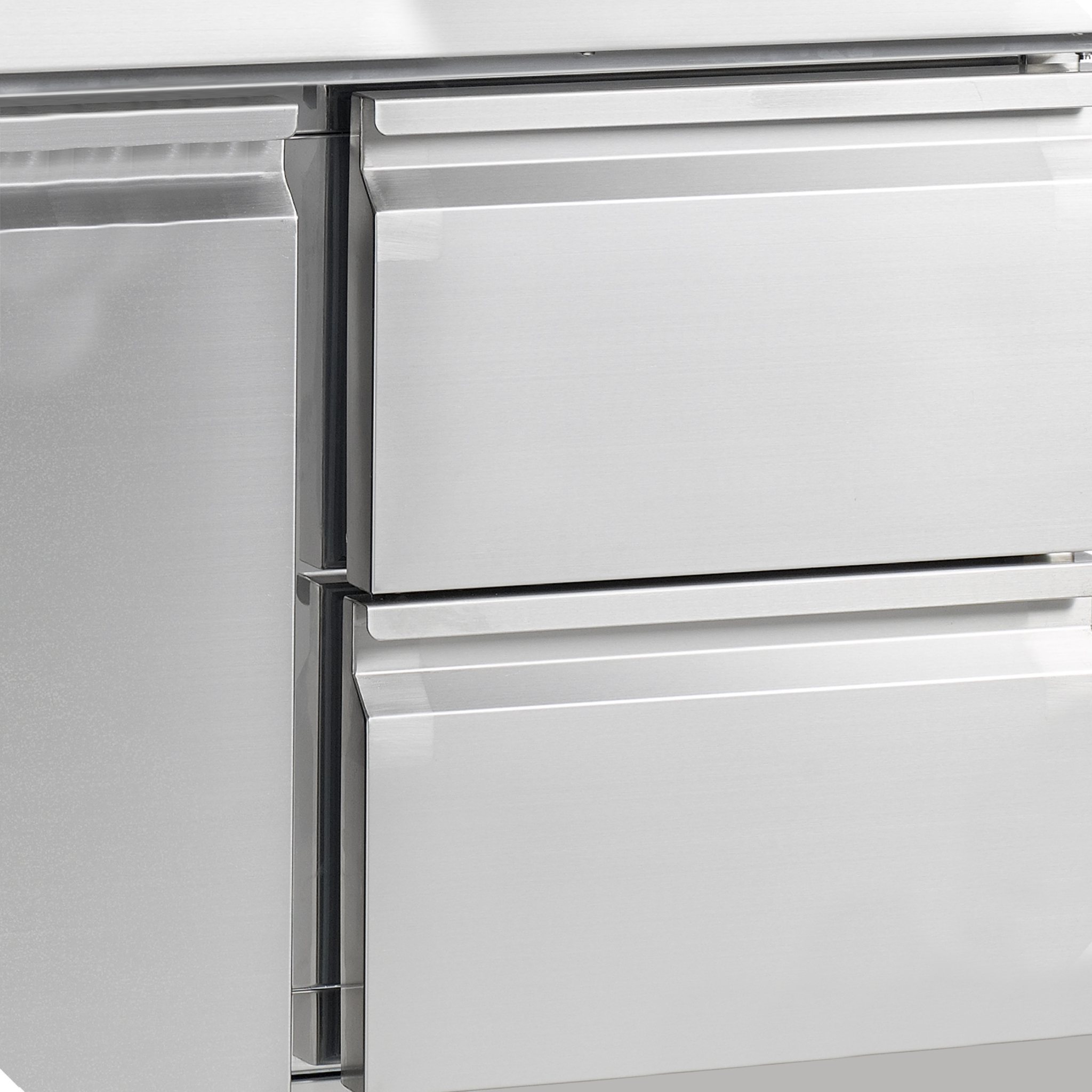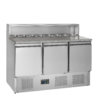 La gama PT de mesas para pizza está realizada en acero inoxidable SS304. Cuenta con una encimera de granito, que es ideal para elaborar pizzas, ya que se mantiene fría y dificulta que la masa se pegue a ella. Están disponibles en varios tamaños con 2 o 3 puertas. También es posible personalizarlas con cajones. Está disponible con o sin unidad de condimentos para bandejas GN1/3; las unidades de condimentos también se pueden incorporar posteriormente.