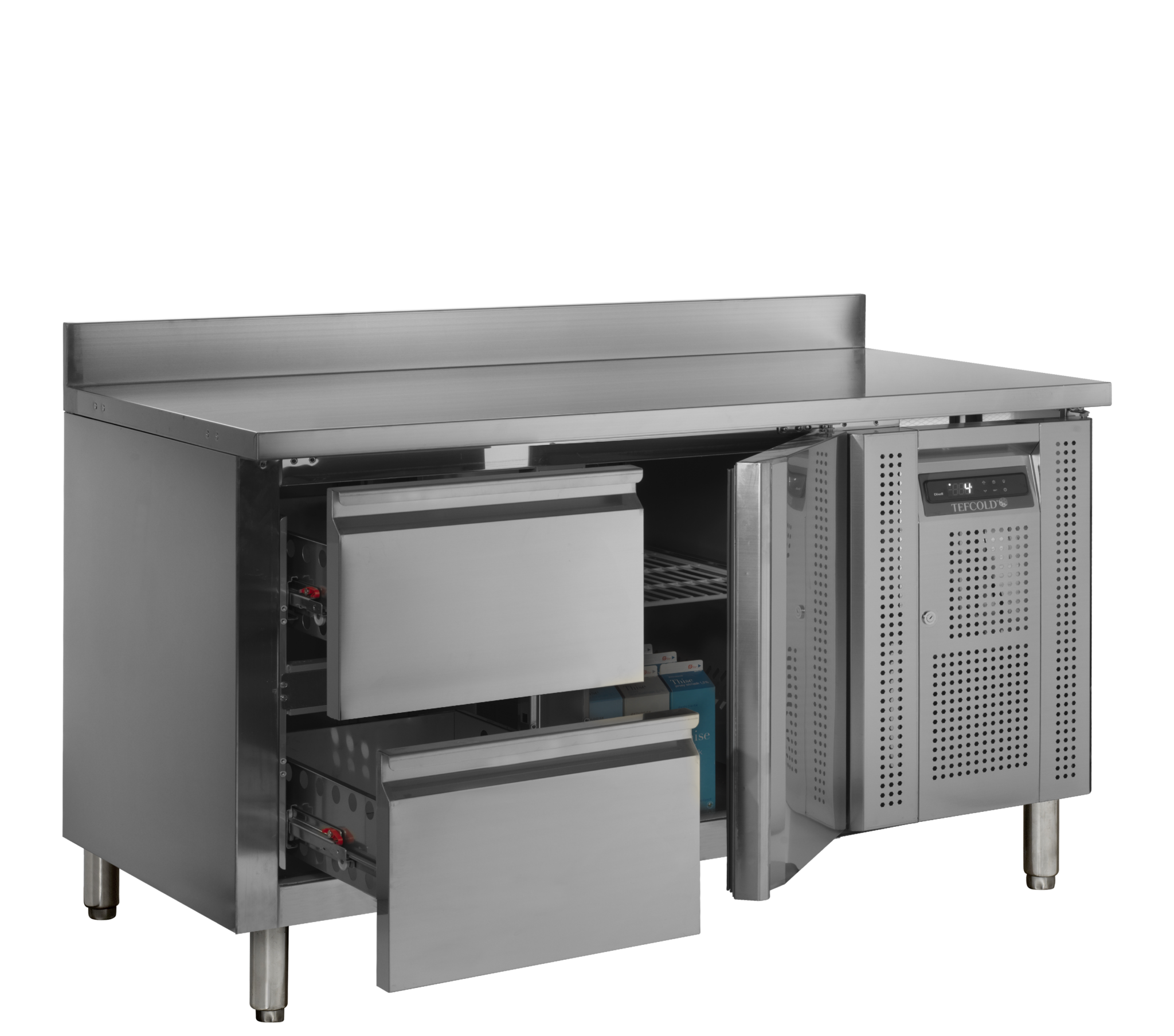 Acero inoxidable|Descongelación automática|Encimera desmontable con protección antisalpicaduras|Control digital e indicador de temperatura|Patas regulables|Cajón(es) GN1/1|Refrigeración forzada