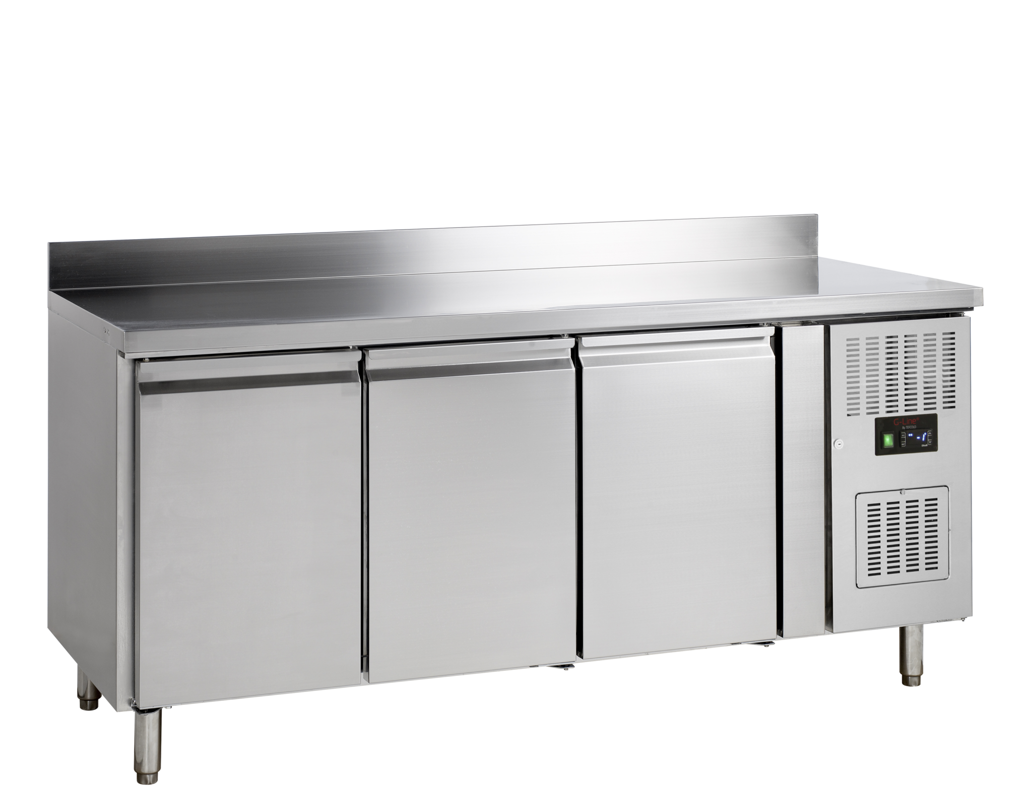 Excelente relación calidad-precio|Acero inoxidable|Descongelación automática|Puertas de cierre automático|Encimera desmontable con protección antisalpicaduras|Patas regulables|Refrigeración forzada