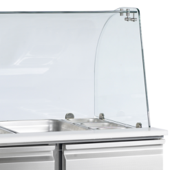 La gama SA de mesas frías Saladette es perfecta para entornos de cocinas muy concurridas con armarios de dimensiones Gastronorm GN1/1 y estantes ajustables. Si se prefiere, también es posible instalar cajones Gastronorm. Estas mesas frías están disponibles en varios tamaños, con encimera de mostrador o cubierta abierta apropiada para bandejas GN. Los modelos con parte superior abierta para bandejas GN están disponibles con y sin tapa de cristal.