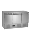 La mesa Saladette de congelados SA está realizada en acero inoxidable SS304 y tiene un rango de temperatura de -20 a -10 grados. Incluye dos armarios con dimensiones GN1/1, incluidos 2 estantes de rejilla GN1/1. Perfecta para cocinas profesionales.