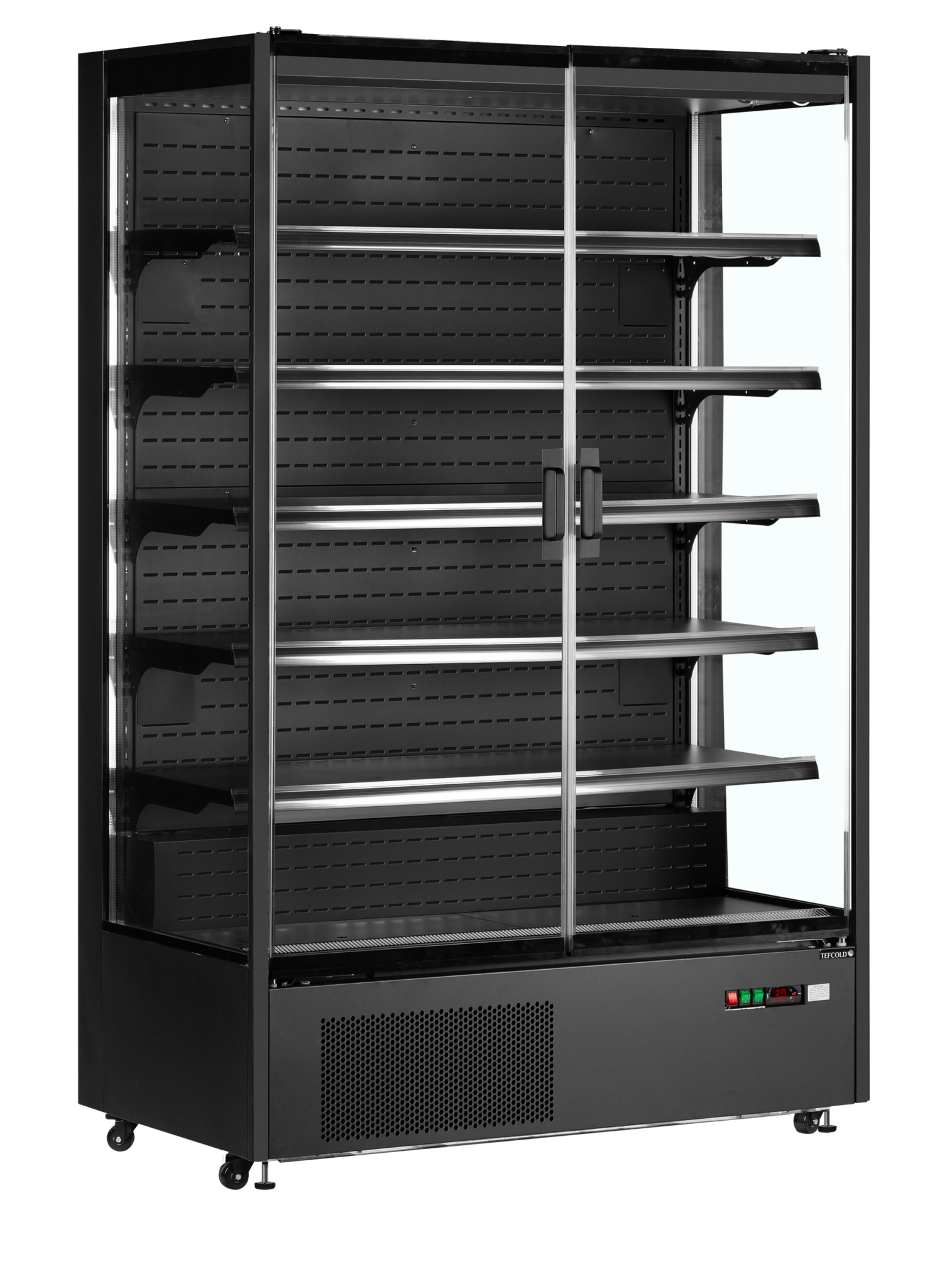 Puertas de cristal sin marco para una excelente visibilidad|Bajo consumo de energía|Interior y exterior negro|Estantes ajustables con función inclinación|Luz LED debajo de todos los estantes|Refrigeración ventilada, rápida e uniforme|Control digital e indicador de temperatura|Paredes de cristal como estándar|Ruedas giratorias y pies con bloqueo|Portaprecios de 33 mm y fijaciones de estante incluidos