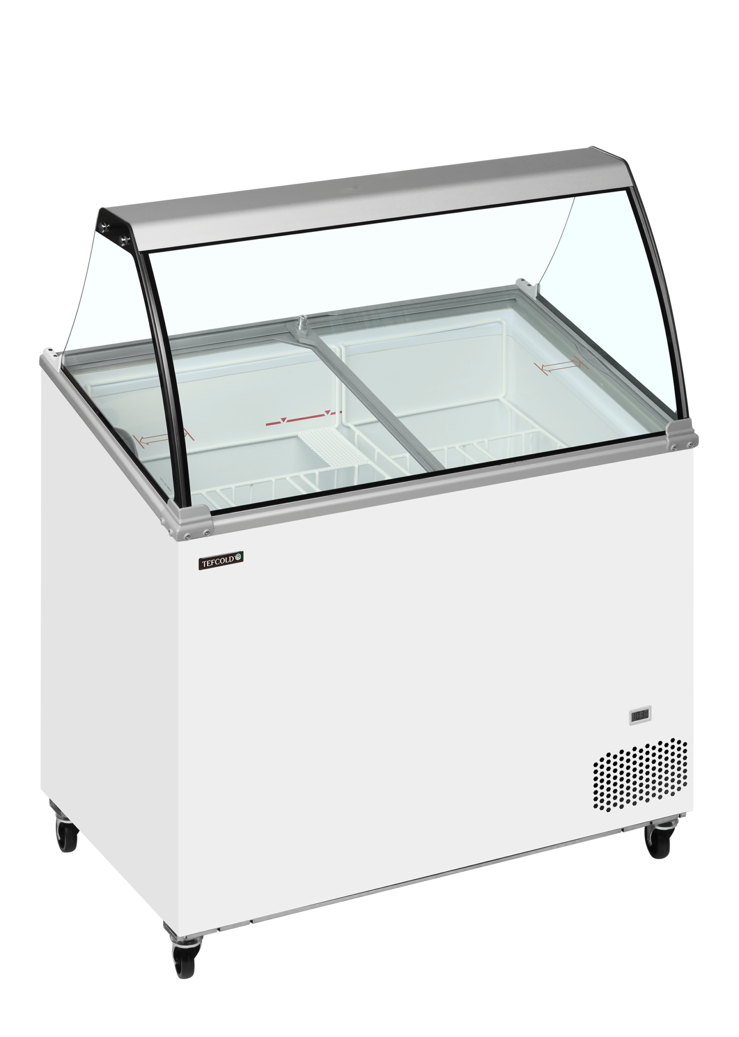 La gama IC-SO de vitrinas de helados ofrece una excelente calidad a un precio competitivo. El modelo cuenta con tapas deslizantes que permiten un fácil acceso al helado para servir y ayuda a aislar la unidad cuando no está en uso. Dispone de una tapa de cristal tipo vitrina y es idónea para la personalización con la marca para atraer la atención de los clientes hacia la unidad y su gélido contenido. El congelador se optimiza con cestos que pueden alojar tarrinas de plástico de 5 litros en la parte superior y dispone de espacio de almacenamiento debajo.