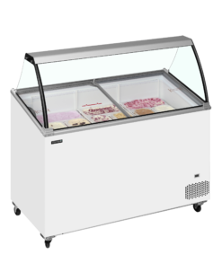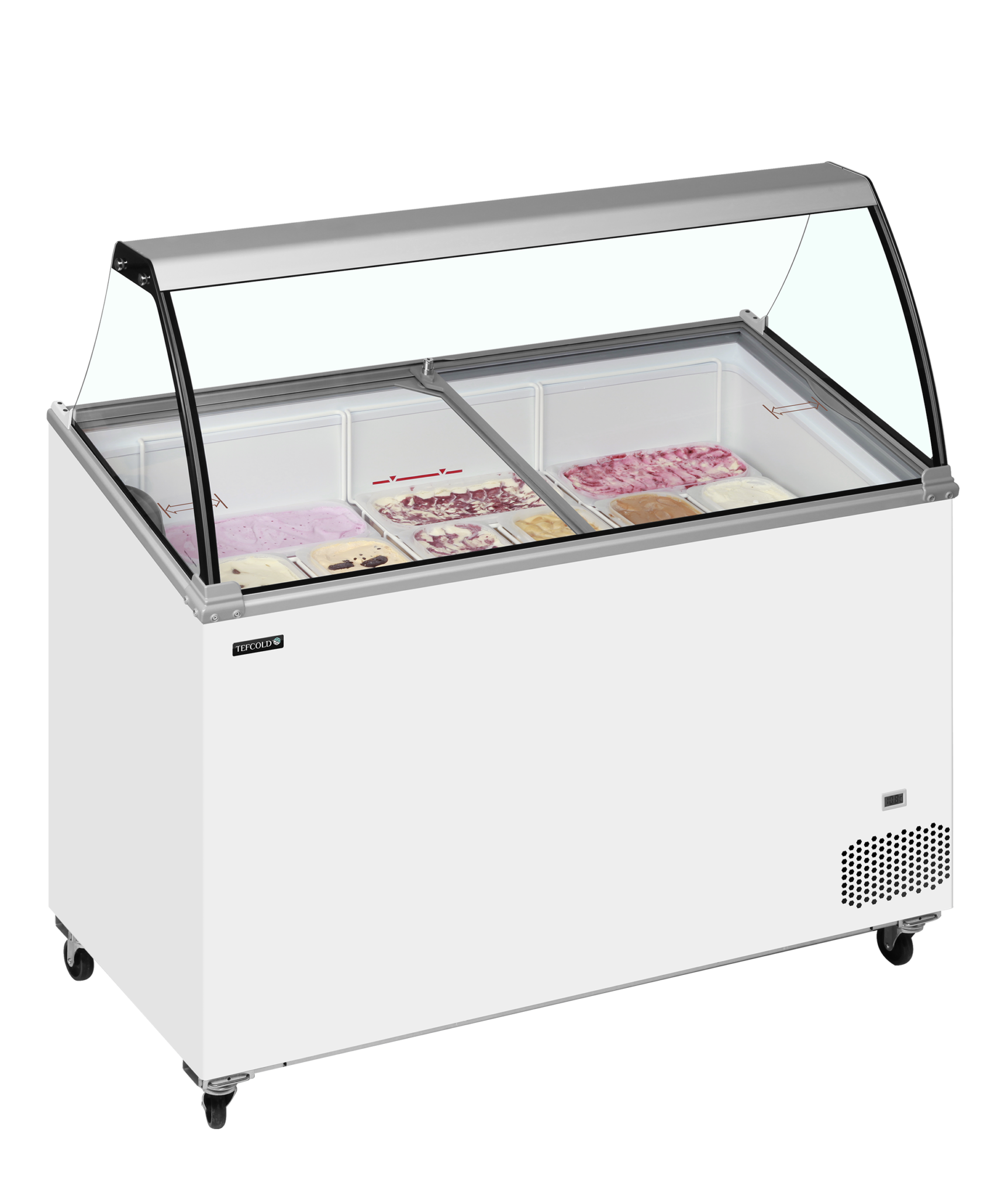 La gama IC-SO de vitrinas de helados ofrece una excelente calidad a un precio competitivo. El modelo cuenta con tapas deslizantes que permiten un fácil acceso al helado para servir y ayuda a aislar la unidad cuando no está en uso. Dispone de una tapa de cristal tipo vitrina y es idónea para la personalización con la marca para atraer la atención de los clientes hacia la unidad y su gélido contenido. El congelador se optimiza con cestos que pueden alojar tarrinas de plástico de 5 litros en la parte superior y dispone de espacio de almacenamiento debajo.