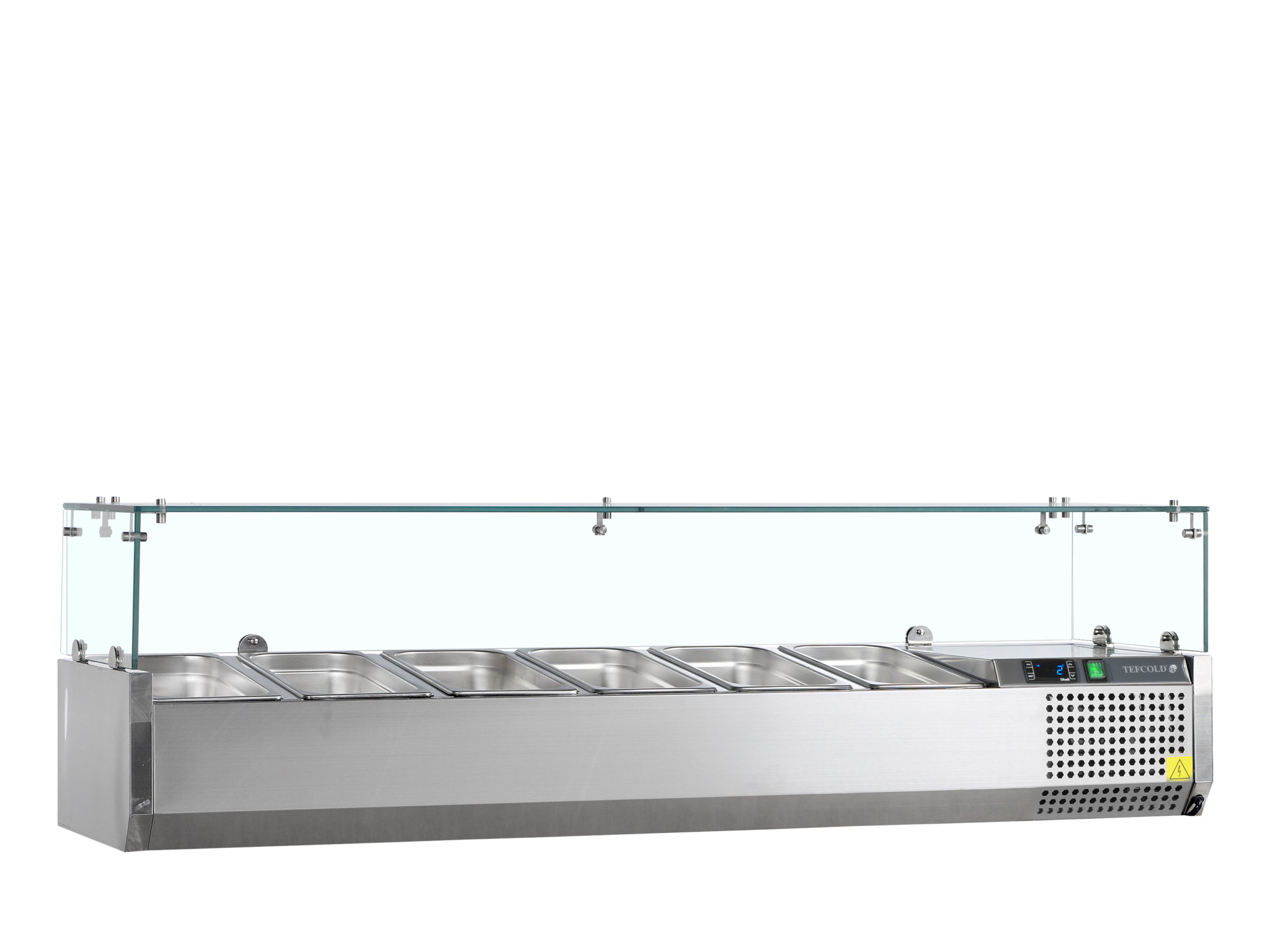La gama VK de vitrinas refrigeradas es un excelente complemento para mesas frías, ya que te permite tener a mano todo lo necesario para la preparación de alimentos. Es compatible con bandejas GN1/4 y GN1/6 (no incluidas). Este refrigerador está fabricado en acero inoxidable SS304 y presenta pantalla de cristal para proteger los alimentos. Es idóneo para pizzerías, restaurantes de comida rápida y bocaterías.